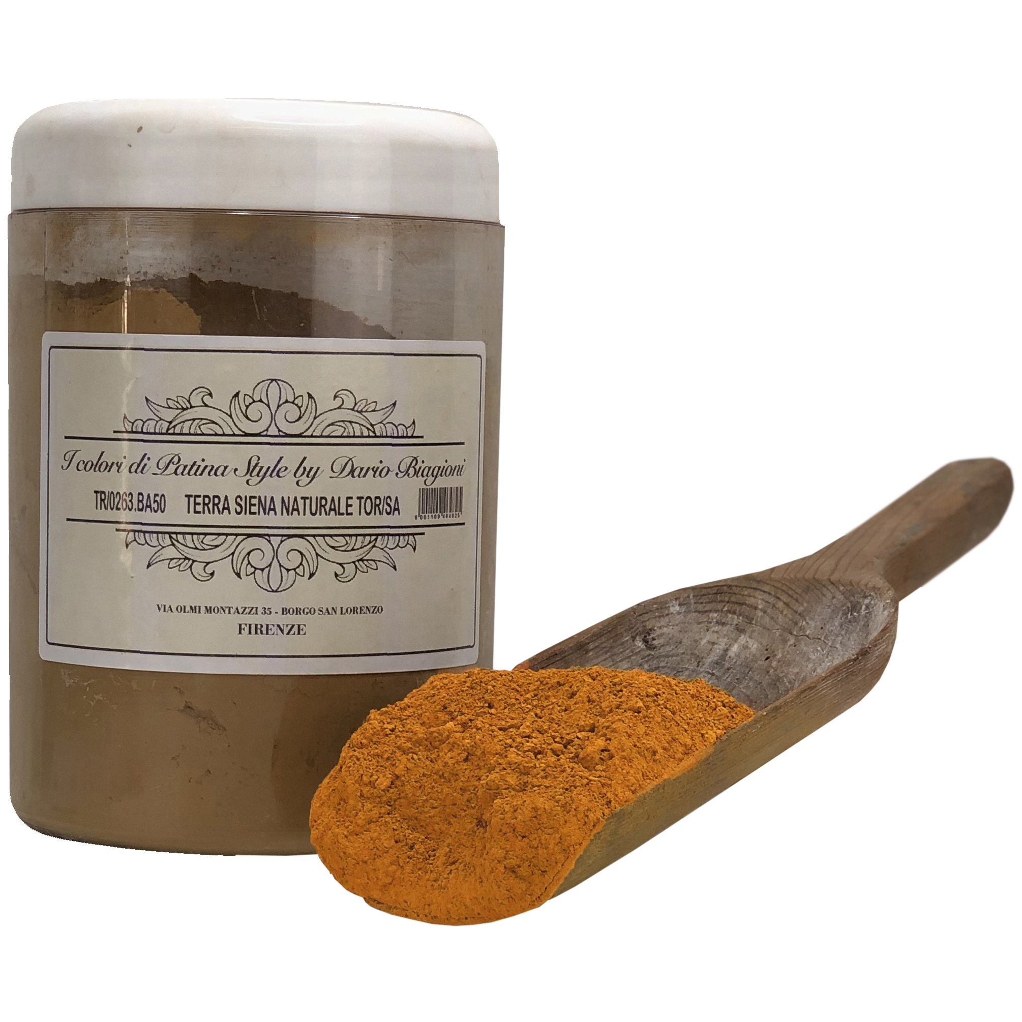 Terra di Siena Natural - This colour, once ground, is very reminiscent of lacquered walnut. The best quality land is extracted from the fields in the Siena. When it is not calcined but remains in its natural state, the solidity of this dye depends on its purity; for this reason the Terra di Siena present on the shop of Patina Style undergoes a careful and scrupulous processing based on washing and ventilation. This coloring earth mixes well with all the white colors.