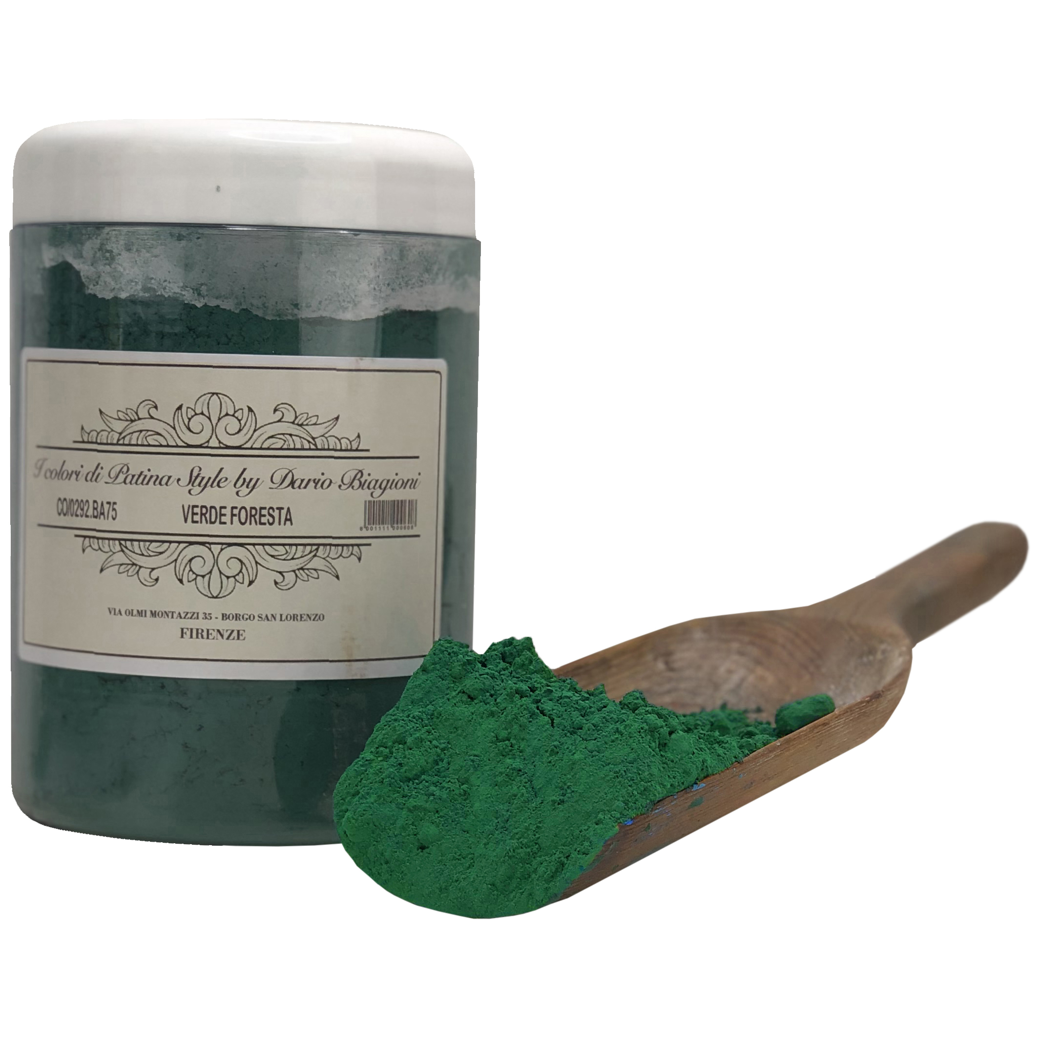 Forest Green - Obtained by treating a green and a brown pigment. Good resistance to light and moisture; low covering power, with a dark but transparent tint. Like the other pigments in powder that I chose for the Shop of Patina Style, also the Green Forest is completely biocompatible and harmless to health.