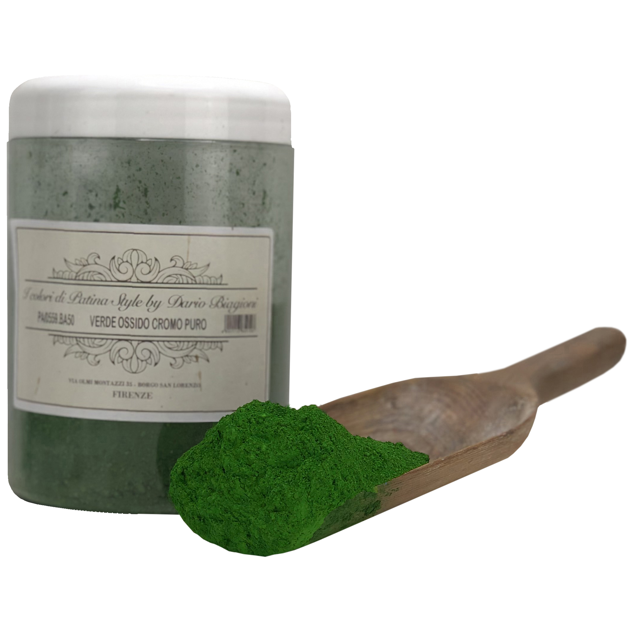 Verde Ossido Cromo puro – I verdi a base di cromo sono in generale, degli ossidi anidri o idrati, fasfati neutri e basici di cromo puro. Il verde di cromo è inalterabile alla luce a all’aria, dal tono molto puro, conserva la brillantezza anche in miscele con i bianchi.