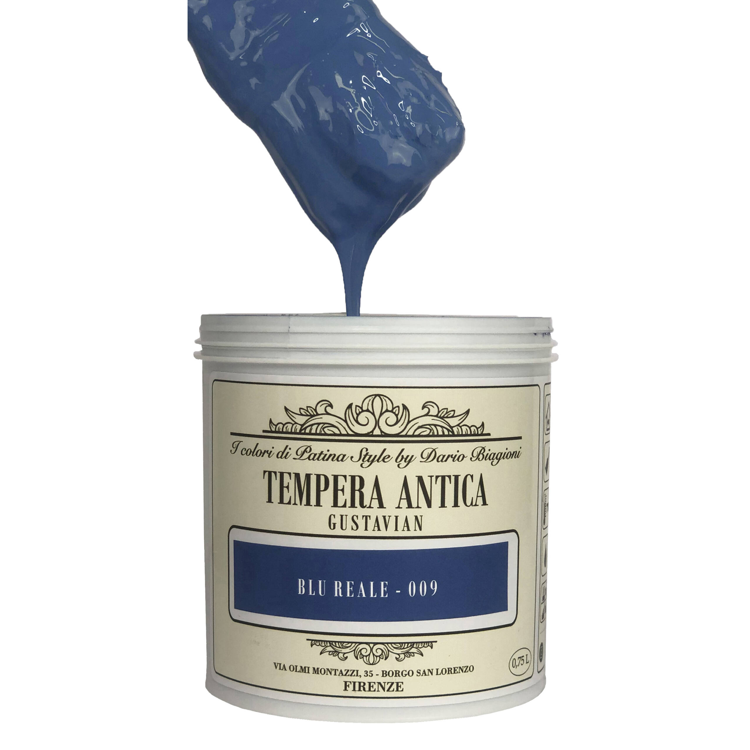 “Blu Reale” – Blu profondo e vivo, ispirato allo stemma della casata reale svedese, nel quale fa da sfondo a dei leoni rampanti giallo oro. Realizzato con il pigmento “Blu Minerale” che non ha bisogno dell’aggiunta di altri colori per raggiungere sfumature estremamente intense.