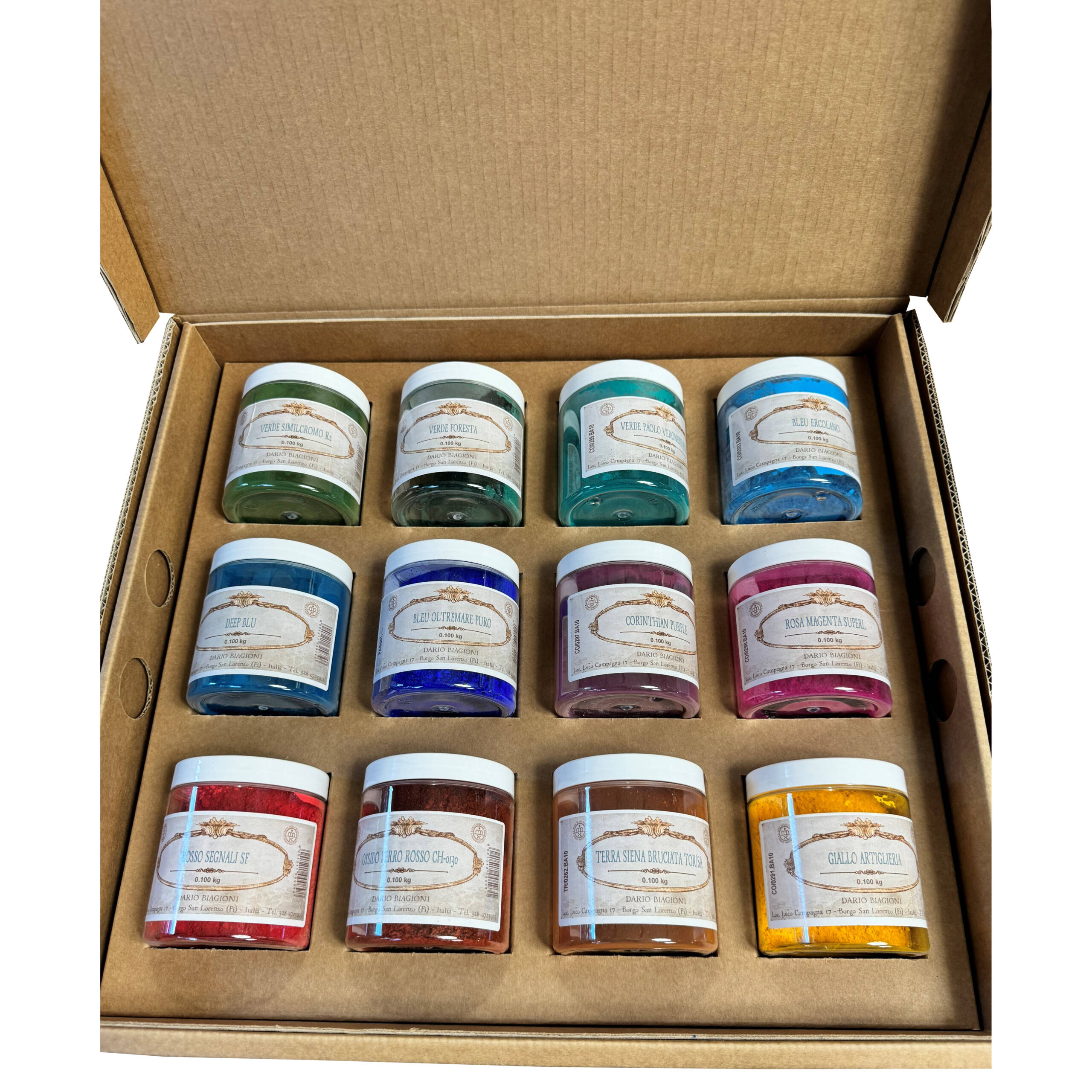 Questo kit contiene 30 pigmenti da 100g ciascuno, accuratamente selezionati da noi per offrirvi una base ideale per iniziare i vostri primi lavori. Perfetto per chi vuole sperimentare una gamma di colori senza impegnarsi nell’acquisto di pigmenti sfusi di grandi dimensioni
